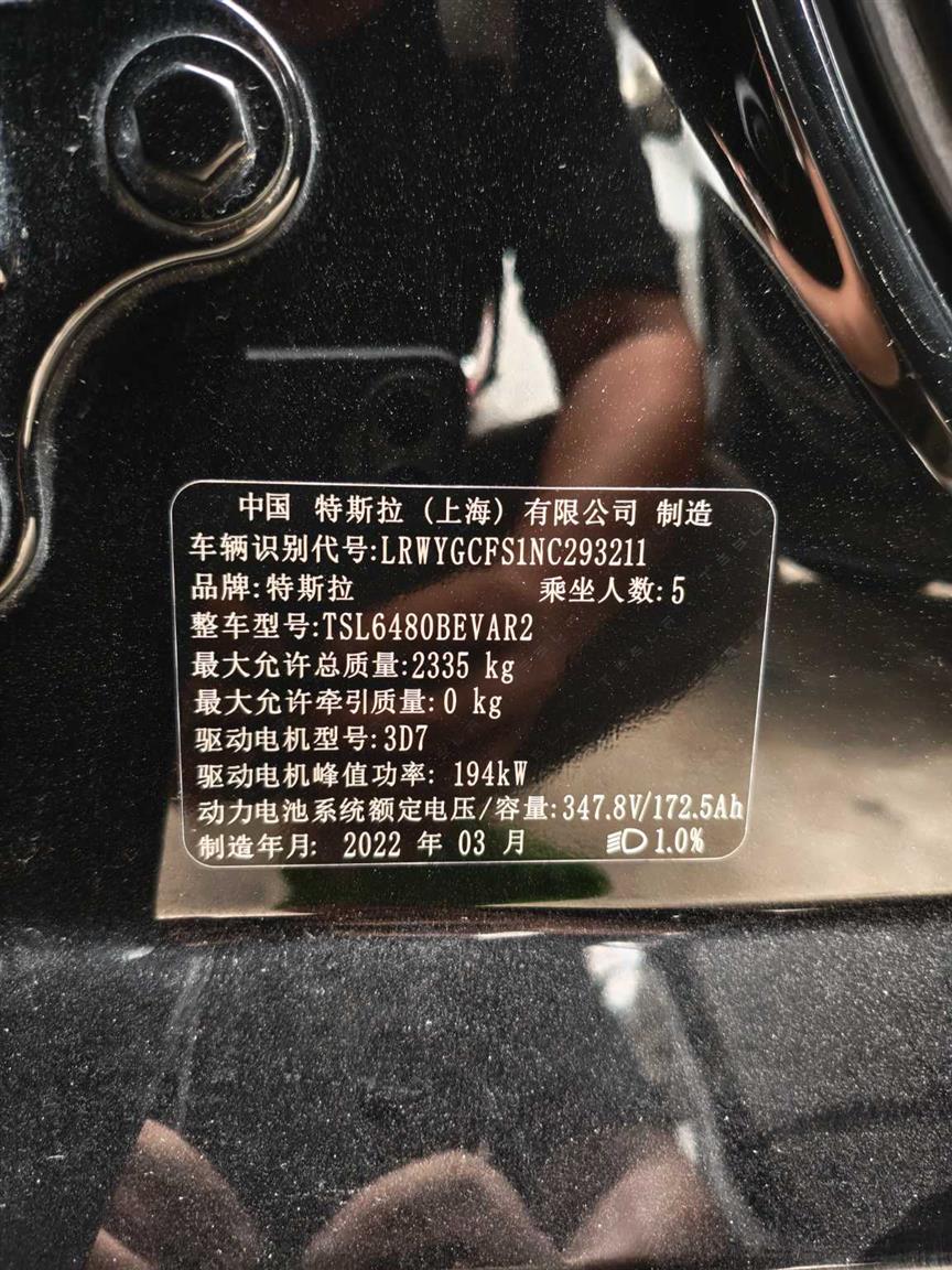 车型: 特斯拉 Model Y 2022款 后轮驱动版