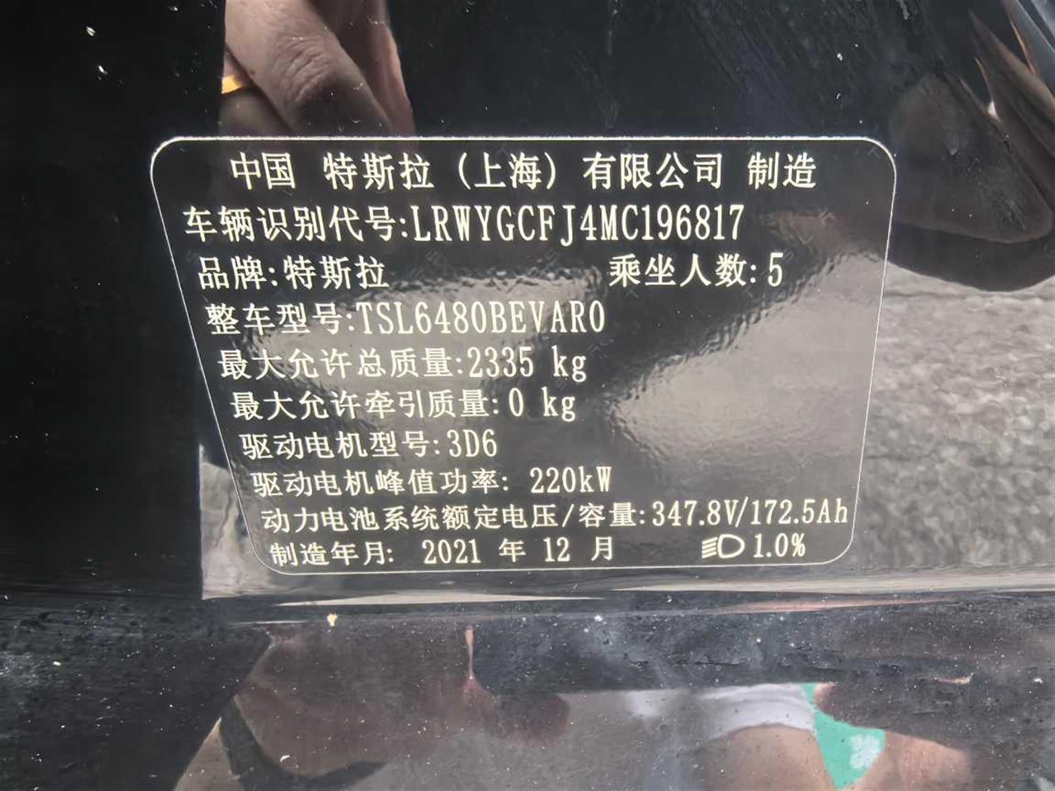 车型: 特斯拉 Model Y 2021款 标准续航后轮驱动版
