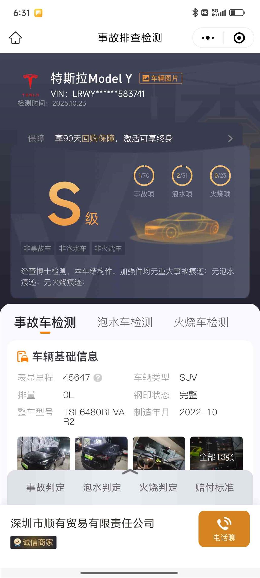 深圳市水母汽车服务有限公司专业车辆检测报告