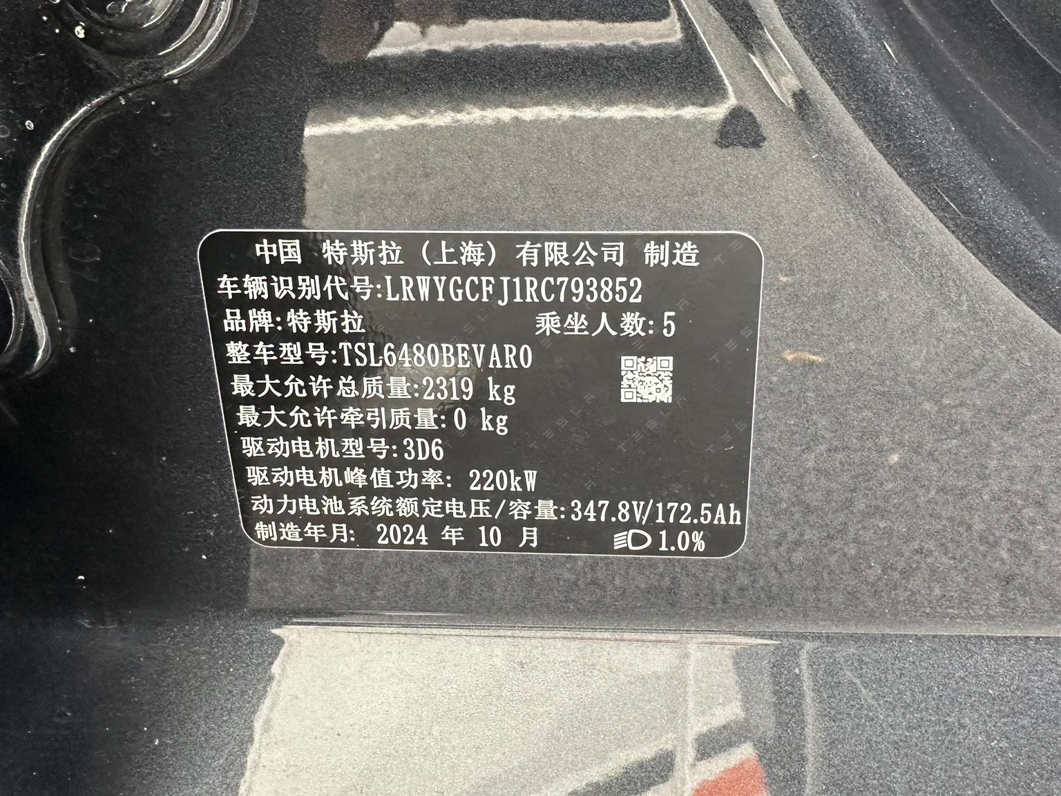 检测时间:2025年10月30日 评测人:彭国东(零售) 检测对象: 特斯拉 Model Y 2024款 554km 后轮驱动版