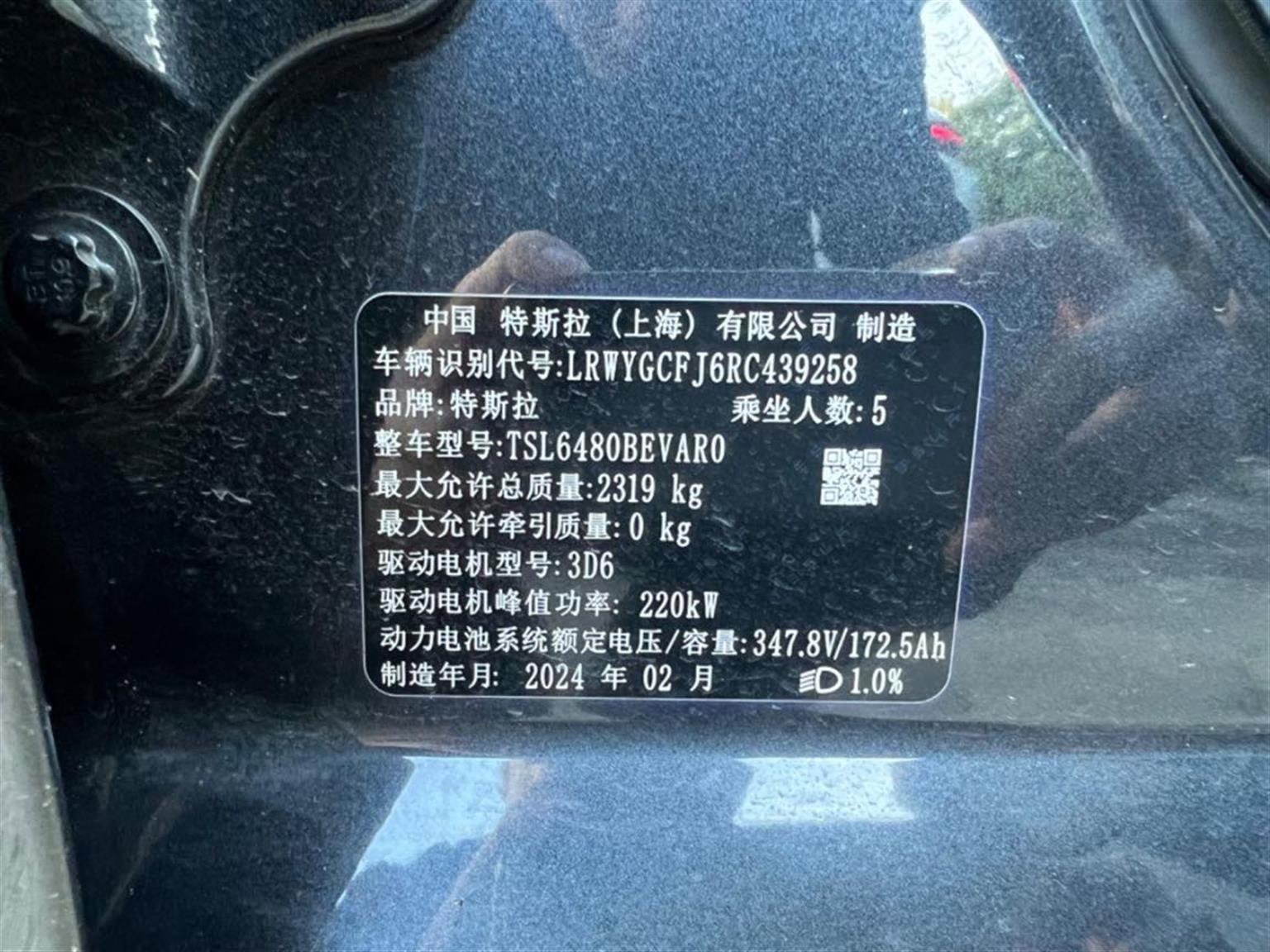 车型: 特斯拉 Model Y 2024款 554km 后轮驱动版